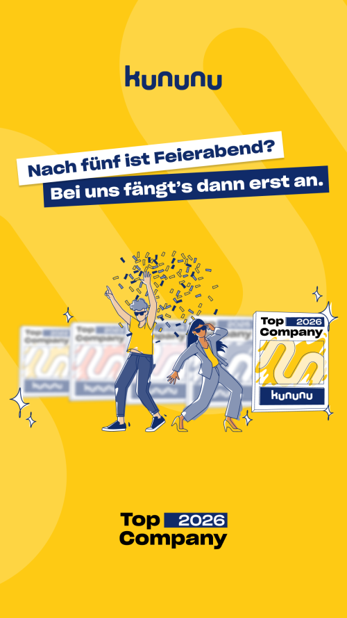 Wir feiern ein kleines Jubiläum: Zum fünften Mal in Folge wurden wir als kununu Top Company ausgezeichnet! Eine Anerkennung, über die wir uns nicht nur freuen, sondern auf die wir wirklich stolz sind.